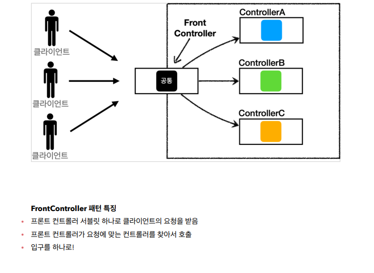 프론트 컨트롤러 서블릿 하나로 클라이언트의 요청을 받고