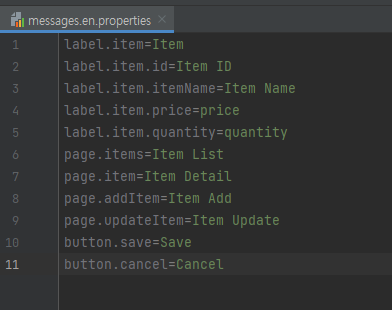 예를 들어서 messages.properteis 라는 메시지 관리용 파일을 만들고