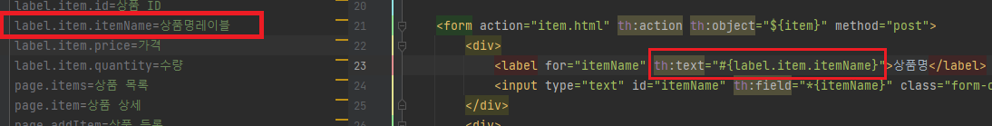 타임리프에서는 "#{메세지}" 로 매핑한다.