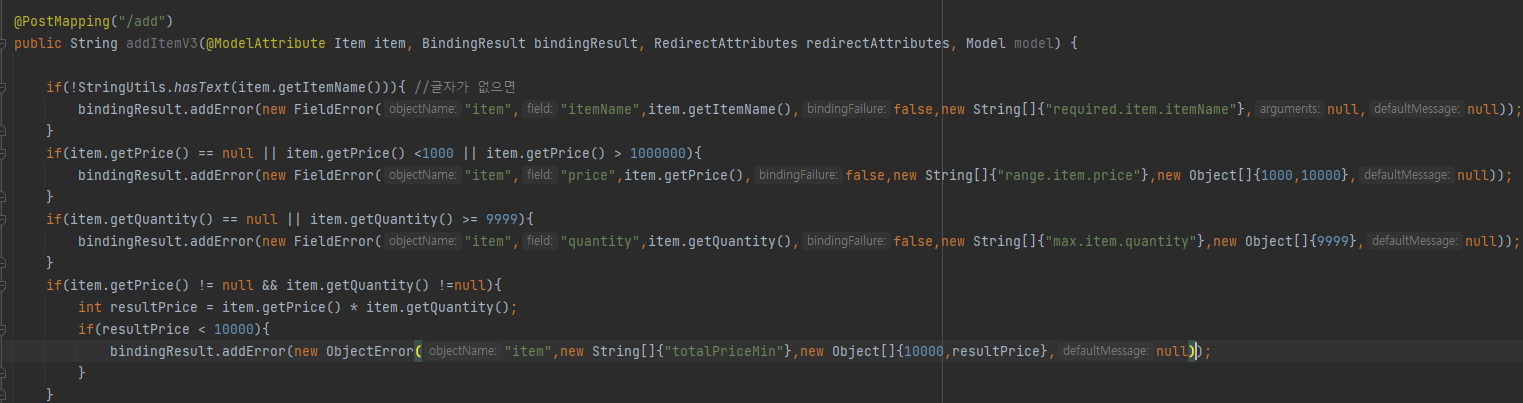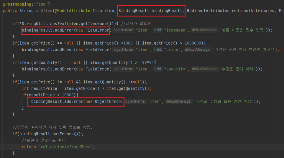 검증 처리 / BindingResult 본문