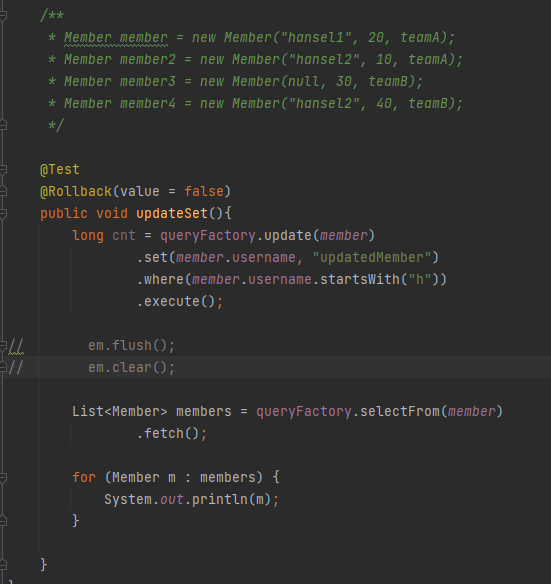 clear를 통해 영속성 컨텍스트를 초기화 해야한다.