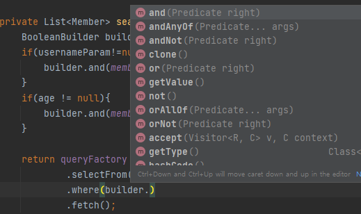 builder는 and, or, not 등 다양한 메서드를 추가로 제공한다.