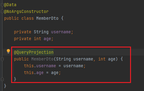 쿼리 프로젝션을 사용하면 해당 DTO를 쿼리dsl이 따로 생성해준다.