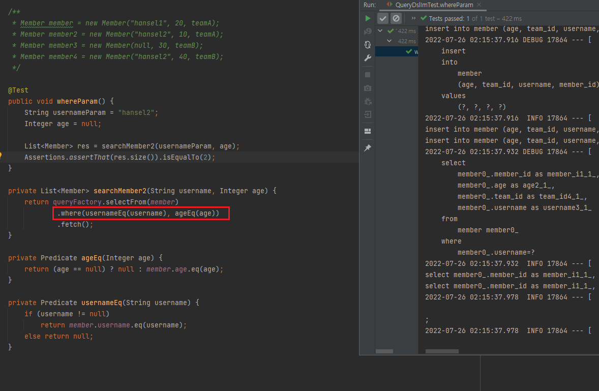 이 방식의 장점은 where절에 오는 null을 유연하게 처리할 수 있다는 것이다.