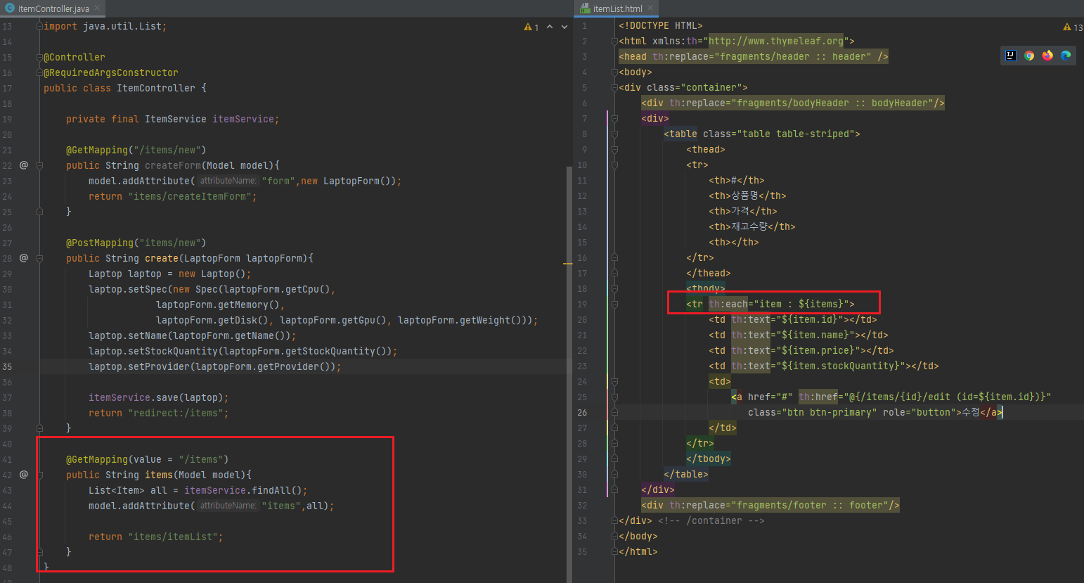 조회를 위한 html도 함께 작성한다.