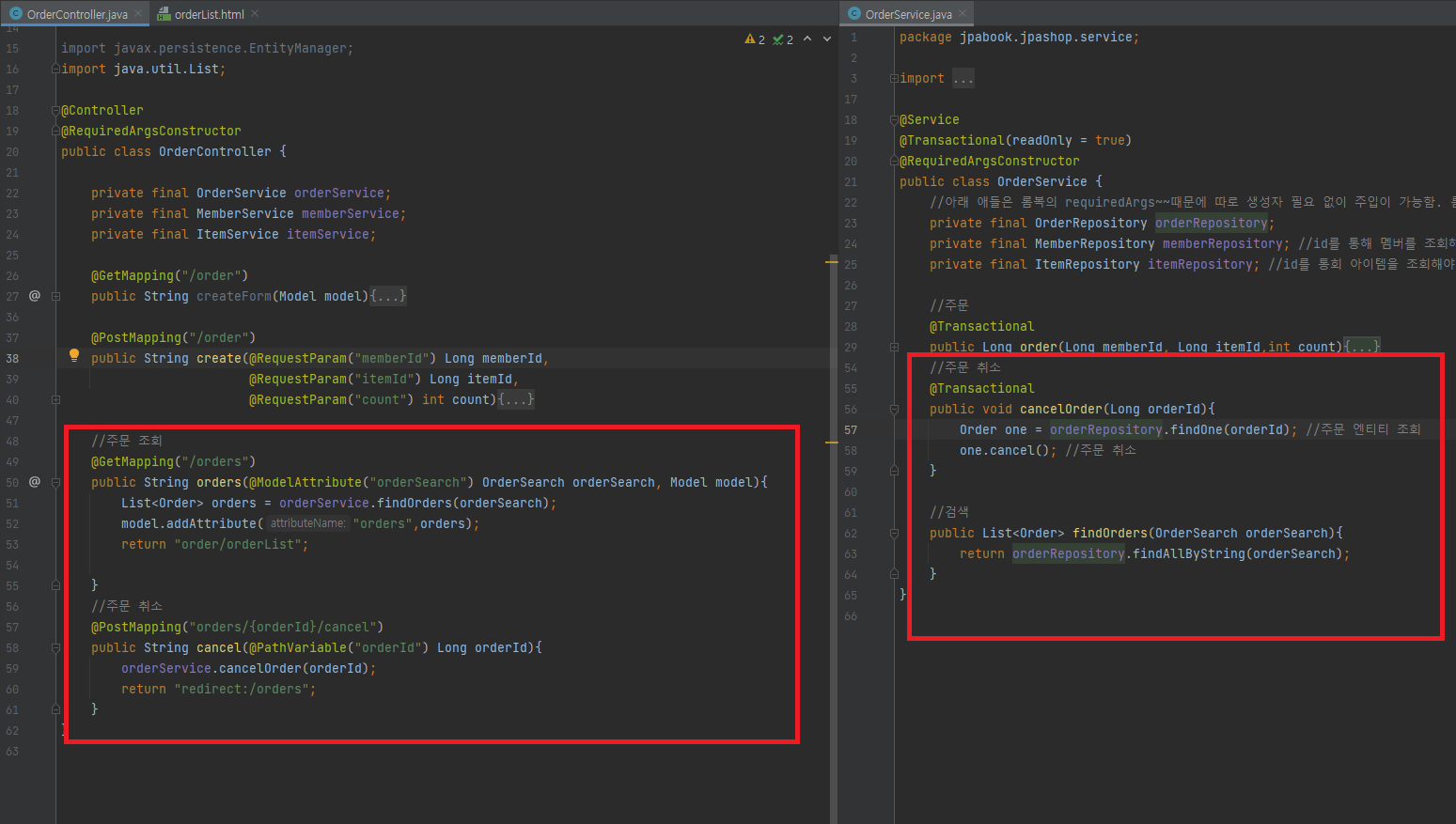 주문의 조회와 취소