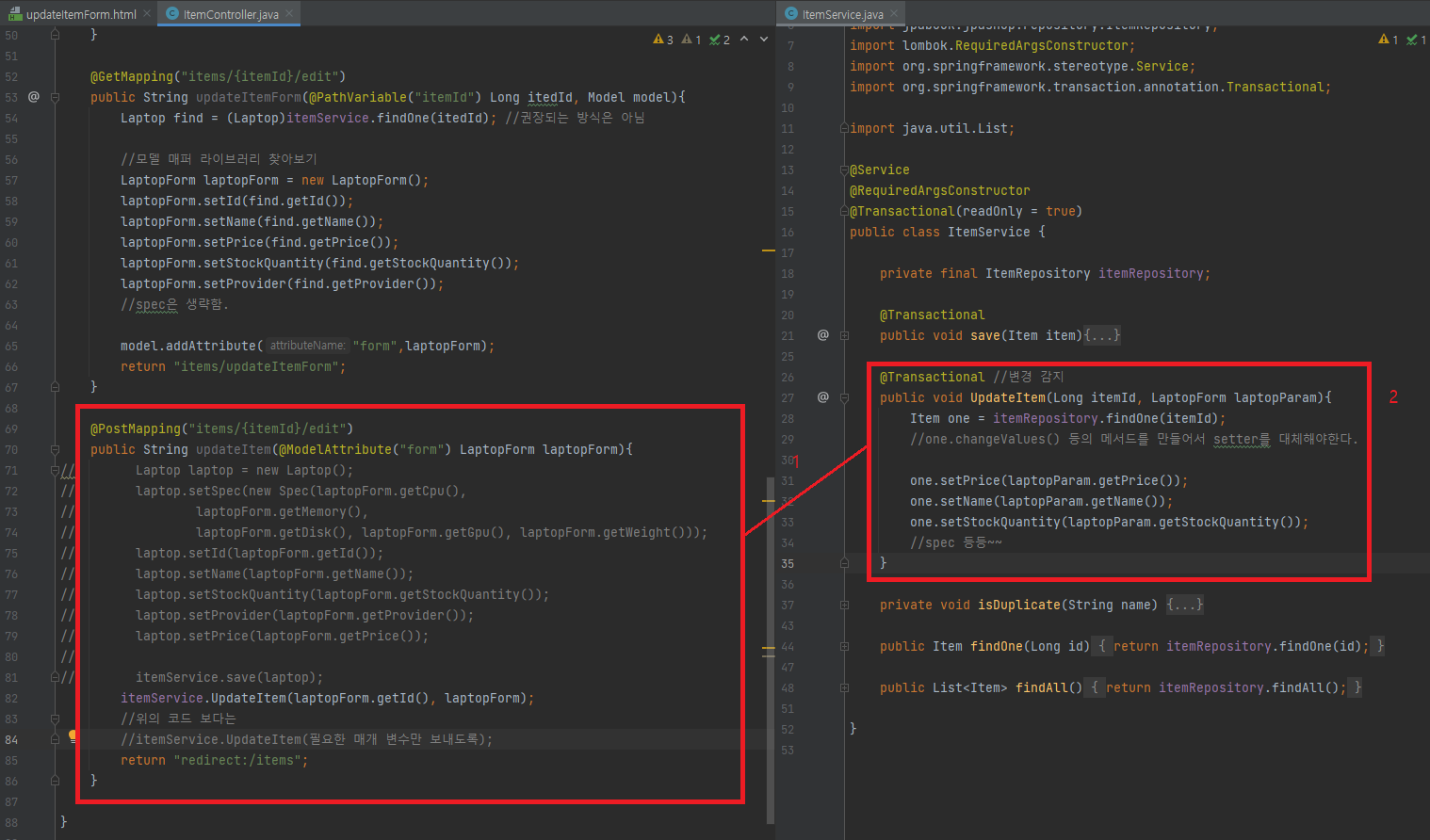 updateItem 메서드 내부의 laptop 객체는 id(pk)가 있으니 리포지토리에서 else문을 타게 될것이다.